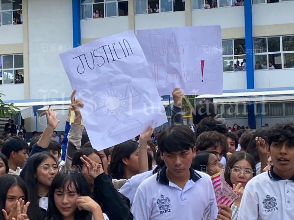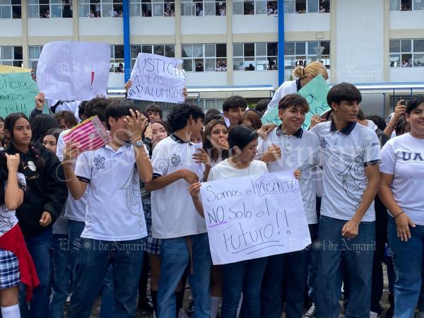 Los manifestantes se encontraban al exterior de las instalaciones del plantel educativo con pancartas, minutos después se dio a conocer que se llevará a cabo una junta directiva donde estará presente un secretario por parte de la UA, los estudiantes solicitaron que a dicha reunión no asista el subdirector de la prepa.