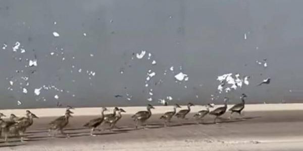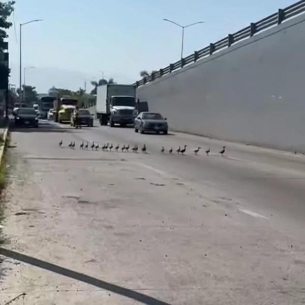 Este sábado, varios patitos se pusieron de acuerdo para detener el tráfico en Bahía de Banderas.