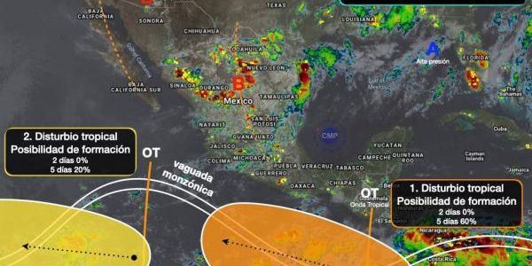 Sobre el sur, oriente y sureste del país se prevén tormentas dispersas fuertes en montañas. Las condiciones anteriores serán generadas por vaguadas superficiales, superiores y el aire húmedo del Pacífico y Golfo de México.