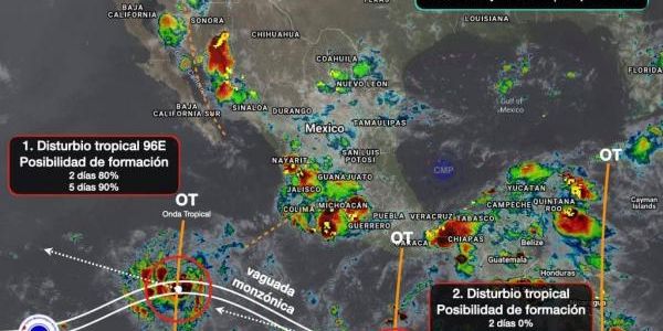 Las condiciones anteriores serán generadas por el paso de ondas tropicales, vaguadas superficiales, superiores y el aire húmedo del Pacífico y Golfo de México.
