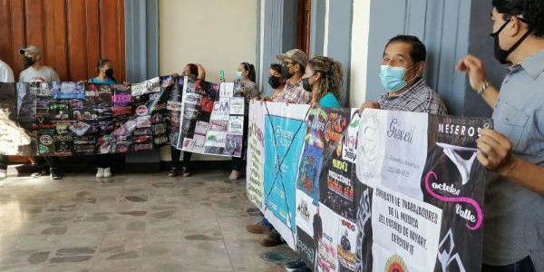 La mañana de este lunes un grupo de varias personas dueños de negocios, en específico para eventos sociales (banquetes, mobiliario, sonido, decoración, salón de eventos, entre otros) se manifestaron a las afueras de palacio de gobierno en el centro histórico de Tepic, para pedir a las autoridades congruencia, justicia y paridad en su trabajo.