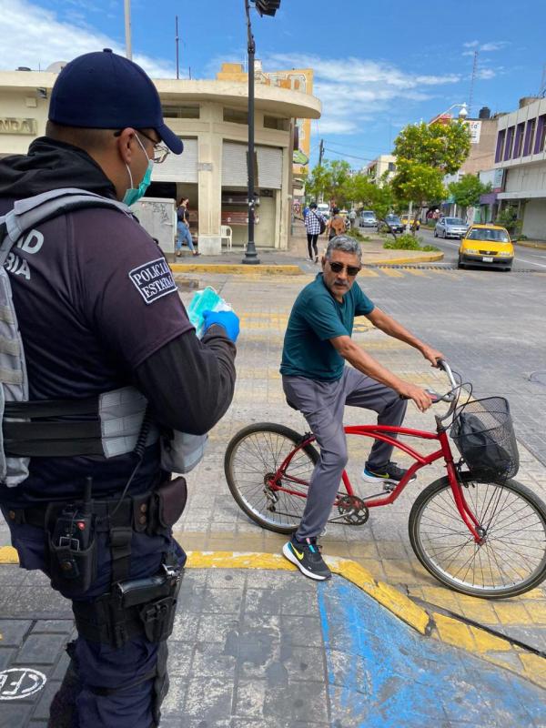 Sin embargo un sector de la población sigue sin utilizar el cubrebocas, por lo cual los elementos realizan el primer contacto, recordando que hoy en día el no usar cubrebocas en el estado puede hacerles acreedores a una multa o horas de detención derivado a hacer caso omiso al uso obligatorio del cubrebocas en zonas públicas.