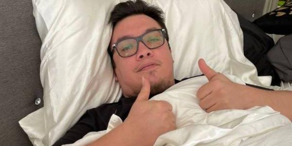 En su publicación a través de Twitter, agregó una foto suya donde se le observa acostado en una cama, y los dedos pulgares de ambas manos levantados.