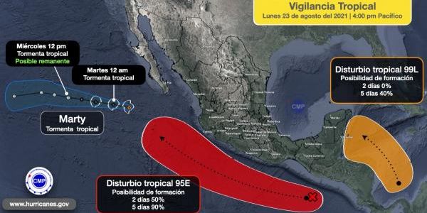 La Tormenta tropical "Marty", se formó esta madrugada de lunes, a las 3:00 am Pacífico, a partir del disturbio tropical 94E, resultado de los remanente de lo que fue el huracán Grace.