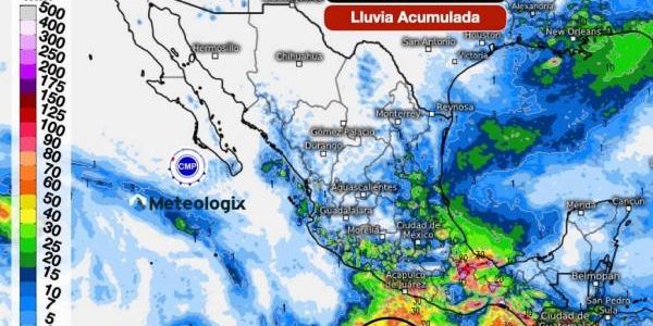 Aumentará periodo de tormentas fuertes a locales muy fuertes con tiempo severo sobre occidente, sur y sureste debido al paso de ondas tropicales, disturbios tropicales y la vaguada monzónica.