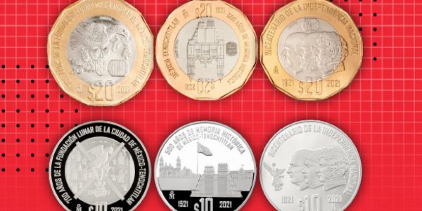 Se trata de tres monedas bimetálicas de 20 pesos, y tres de plata de 10 pesos, las cuales serán puestas en circulación a partir de este día, según informó el Banco de México (Banxico).