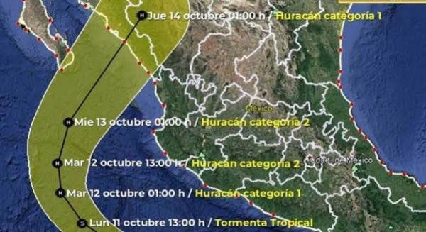 De mantener su desplazamiento, la tormenta tropical podría convertirse en huracán categoría 1 el martes frente a las costas de Nayarit. Además, se pronostica que toque tierra por el estado de Sinaloa entre los días miércoles y jueves, como huracán categoría 1.