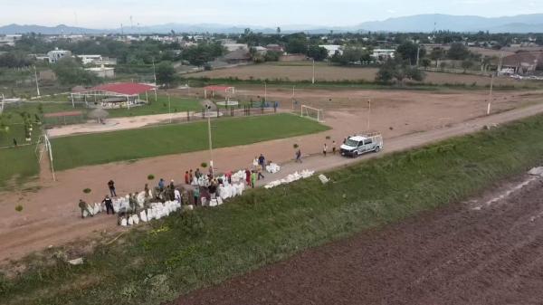 Asimismo, con el llenado de 4000 mil costales con arena para reforzar el bordo del Filo ante alguna creciente de los niveles de agua provocados por las lluvias y así evitar el desbordamiento en las localidades de Camalotita y Tecuala.