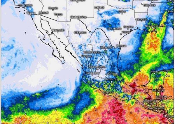 El comunicado establece que el sistema de presión se localiza a 650 kilómetros (km) al sureste del río Suchiate, frontera de México con Guatemala y que se desplaza hacia el oeste-noroeste.