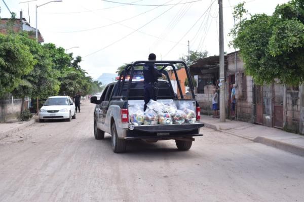 Las despensas fueron donadas por el Gobierno Federal, mismas que están siendo entregadas casa por casa por personal de la SSPC, Ejército Mexicano, Marina y Guardia Nacional