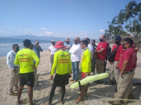 Tepic, Nayarit; 19 de noviembre de 2021.-El Gobierno del estado de Nayarit a través de la Policía Estatal Turística, Protección Ciudadana y Bomberos del estado, en conjunto con La Secretaría de Desarrollo Urbano, Secretaría de Turismo y autoridades municipales son aprobadas con la certificación ?Blue Flags, Playas Limpias? en la playa Fibba de Bahía de Banderas y en la laguna del municipio de Santa María del Oro.