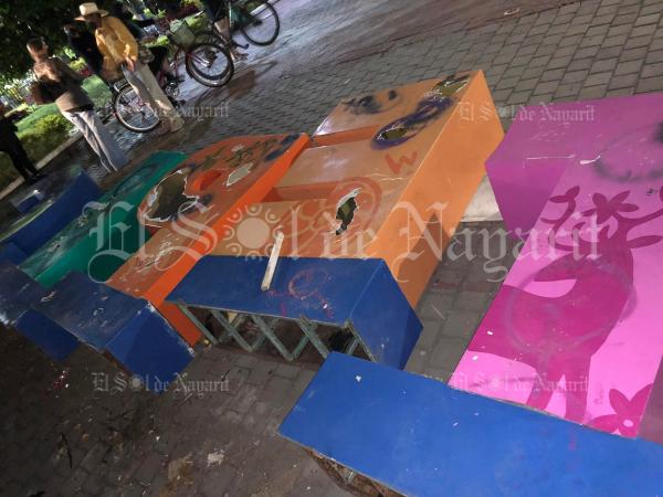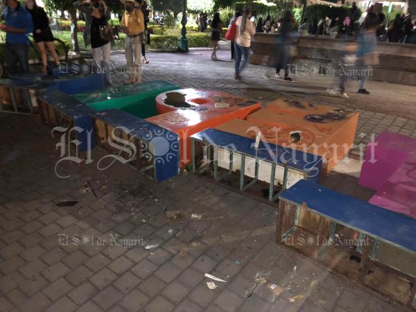 Finalmente se reunieron en la pérgola de la Plaza Principal, donde destrozaron y tumbaron las tradicionales letras de "Tepic" que se encontraban en el lugar, para posteriormente seguir tocando sus tambores.