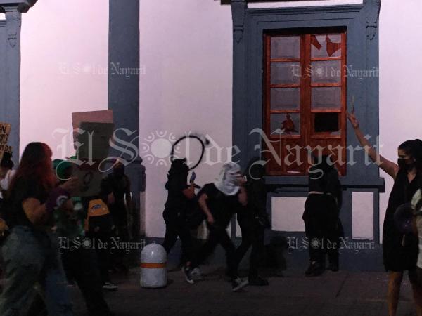En primer lugar, el palacio de gobierno sufrió pintas en su fachada, así como daños en ventanas y puertas, intentando abrirlas con objetos pesados, entre las pintas se podía leer "feminicidas, machistas", mientras que los cristales de algunas ventanas yacían destrozados.