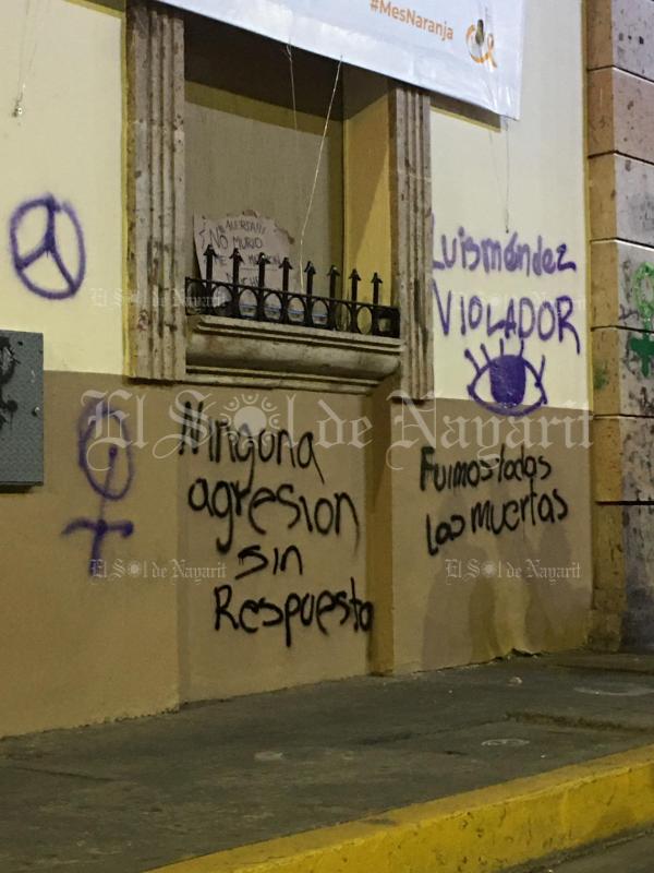 Durante la marcha del 25 de noviembre, un grupo de feministas realizó pintas sobre la fachada del palacio de gobierno en la Avenida México.