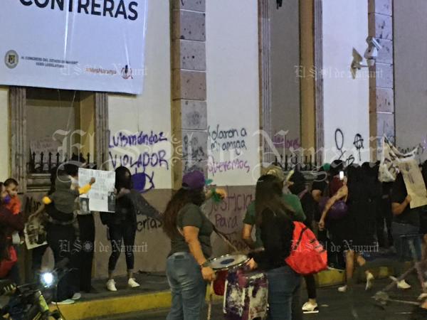 El H. Congreso de Estado corrió con la misma suerte, al sufrir daños en la puerta y pintas en las paredes con mensajes semejantes a las dejadas en Palacio de Gobierno, además también quebraron los cristales de las ventanas con apoyo de martillos; recordemos que en la marcha del año pasado, un grupo de personas logró entrar y realizó varios destrozos al interior.