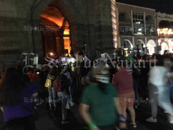 Su tercera parada fue en la catedral de Tepic, donde también realizaron pintas en la fachada, además algunas mujeres subieron a la reja de la entrada, y permanecieron allí durante algunos minutos junto al resto del grupo que continuaba gritando "¡Somos malas, podemos ser peores!" y tocando sus tambores.