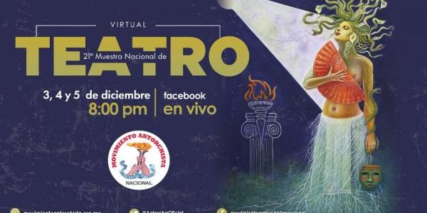 El Movimiento Antorchista Nacional, a través de su Comisión Nacional Cultural, anunció su 21º Muestra Nacional de Teatro, la cual, por segunda ocasión, se realizará de manera virtual debido a la contingencia sanitaria por la que siguen atravesando el país y el mundo.