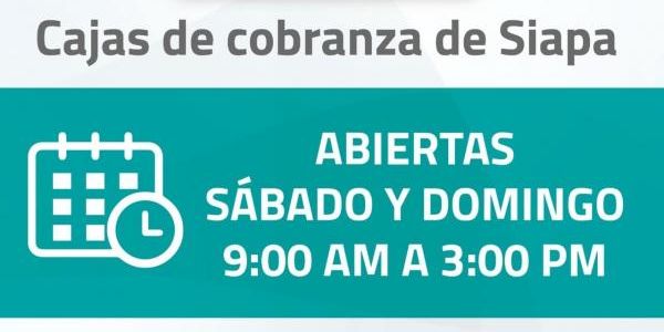 El SIAPA Tepic anunció que todos sus módulos de cobranza abrirán los sábados y domingos, de 9 de la mañana a 3 de la tarde, para que los usuarios que no pueden pagar el agua en días hábiles, puedan hacerlo los fines de semana.