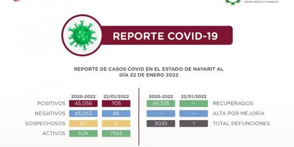 Se reportaron 705 casos nuevos de Covid-19 en Nayarit este sábado 22 de enero, de acuerdo con información oficial proporcionada por las autoridades estatales.