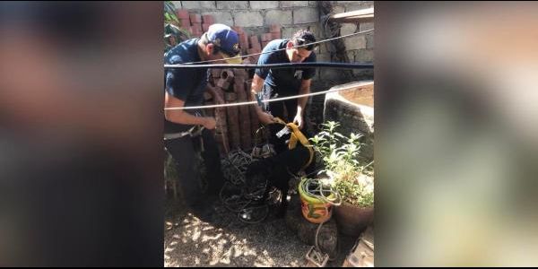 Elementos de Protección Ciudadana y Bomberos, toman conocimiento del hecho y acuden inmediatamente al lugar señalado, donde se corroboró el hecho, al encontrarse con un canino atrapado en un pozo de aproximadamente 5 metros de profundidad.