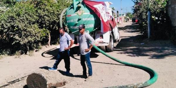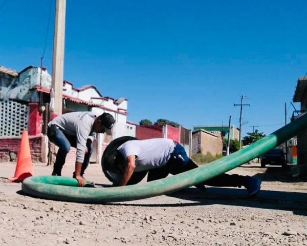 Personal de la dirección de Oromapas, realizan trabajos en el desazolve de la red de drenaje en la comunidad de Sayulilla, municipio de Acaponeta.