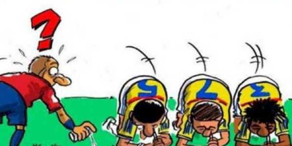 En dicho dibujo, se muestra a tres jugadores de la Selección colombiana aspirando cocaína en una línea trazada por el árbitro.