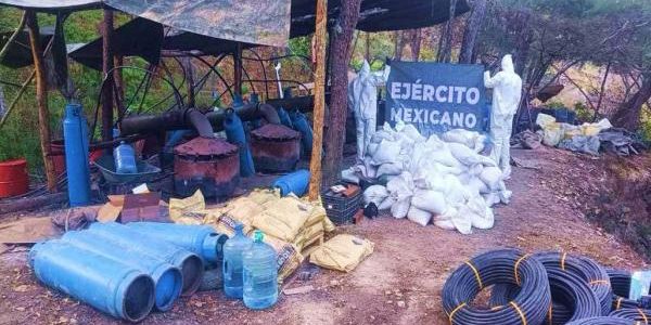 Elementos del Ejército Mexicano, adscritos a la 13/a. Zona Militar en Tepic, lograron el aseguramiento de un laboratorio clandestino de drogas sintéticas en las inmediaciones del poblado Zapotán, municipio de Compostela, Nayarit, tras una denuncia ciudadana al 089.