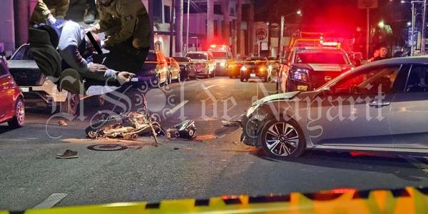 De acuerdo con los primeros informes, un empleado de valet parking del bar Sala de Despecho, sacó un vehículo Honda Civic en color para entregarlo a su propietaria, pero al salir dio una vuelta en u, la cual está prohibida, y terminó cortándole la circulación a una motocicleta Italika.