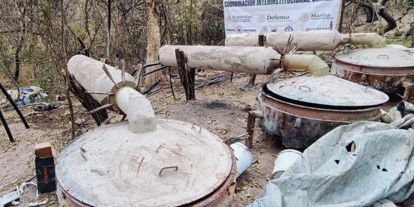 La Secretaría de Marina (Semar) en coordinación con la Fiscalía General de la República (FGR), aseguró dos laboratorios clandestinos presuntamente empleados para la elaboración de drogas sintéticas, así como un plantío de marihuana en la localidad Bacatá, municipio de Cosalá, estado de Sinaloa.