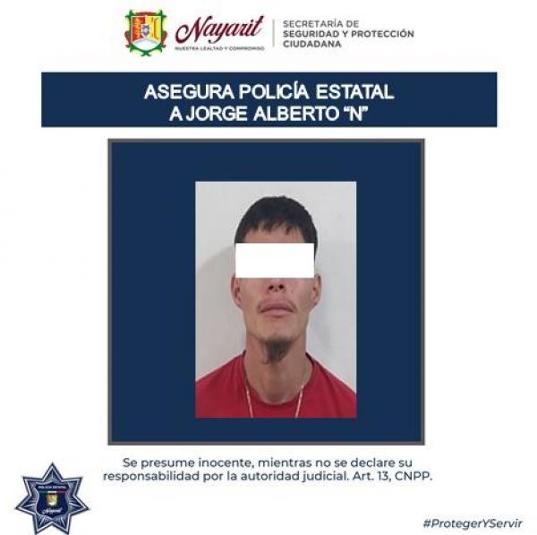 9.- Jorge Alberto "N" "N", de 34 años de edad, en la colonia Infonavit el mirador, asegurándole un envoltorio de plástico conteniendo en el interior una sustancia cristalina y granulada con las características propias de la droga conocida como cristal.