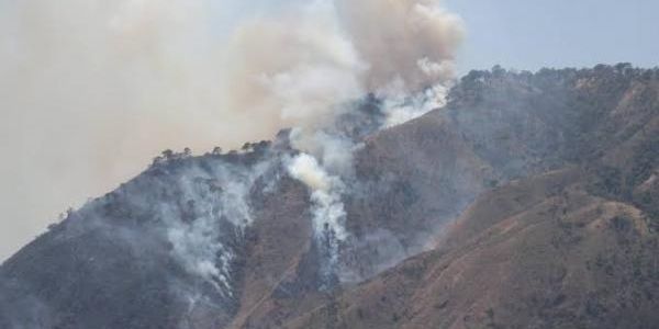 Sobre el incendio en el Cerro de San Juan, se refiere que los trabajos de sofocación se llevan a cabo de manera ardua.