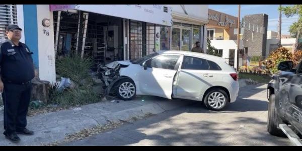 En la colonia Matatipac, una mujer se impactó contra la fachada de una estética destrozando varios productos de belleza.