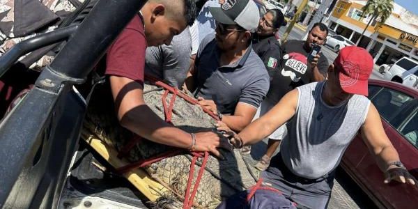 Personal de Ecología y Patrulla Verde aseguraron un enorme cocodrilo de 3.30 metros en la zona de La Mina Asencio y Los Tules en Puerto Vallarta.