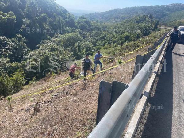 Se refiere que el hallazgo del masculino ocurrió en el kilómetro 27, allí arribó personal de la fiscalía de Nayarit, Guardia Nacional, y SEMEFO. Se refiere que el cuerpo estaba embolsado, presenta huellas de tortura y se encontraba en estado de putrefacción.
