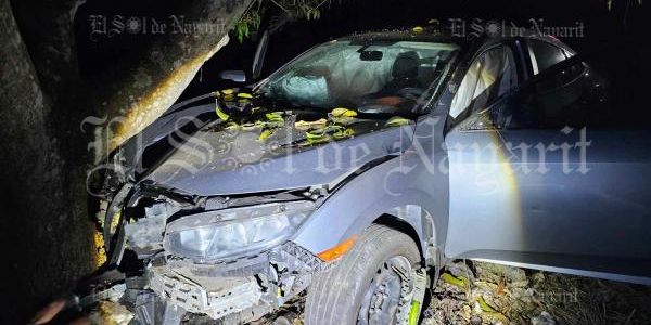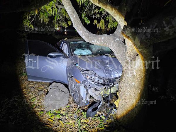Se trata de un automóvil Honda civic, gris con placas de Nayarit, el chal quedó destrozado de su parte frontal. No se reportan personas heridas. Trascendió que se trata de un vehículo de renta. Elementos policiacos tomaron nota de los hechos.