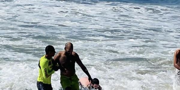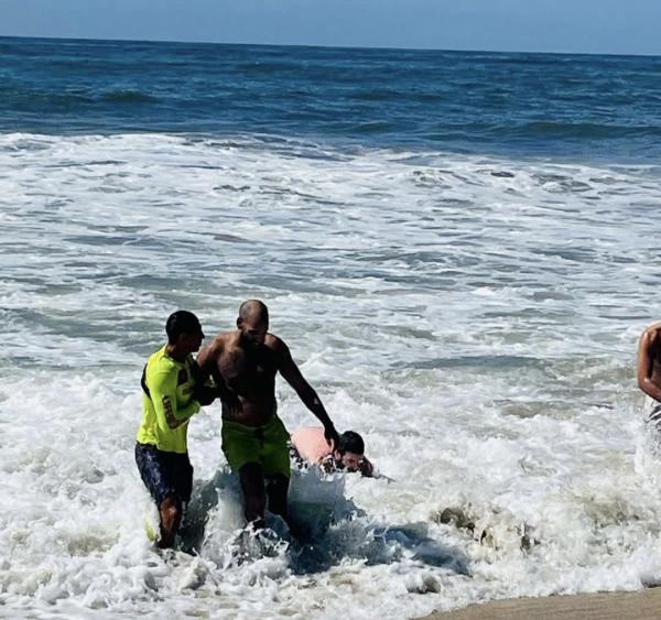 En playas de San Pancho, Nayarit, un joven rescatista arriesgó su vida propia para salvar la de un bañista.