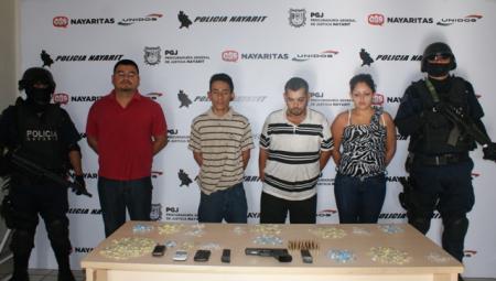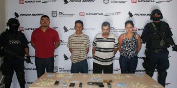En un comunicado de la PGR se informa que el día de hoy elementos de la Policía Nayarit lograron la detención de cuatro sujetos, entre ellos una mujer, tras un operativo implementado en la Colonia Los Sauces de la capital nayarita.