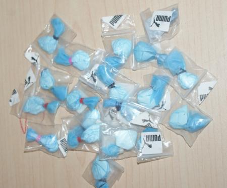 La detención de Carlos Enrique y Lourdes García se llevó a cabo sobre la calle Fresno entre Libramiento Carretero y Calle Magnolia, quienes luego de ser abordados por los efectivos y tras ser sometidos a una revisión, se les encontraron 60 envoltorios con etiquetas sobrepuestas de las marcas Puma y Ferrari que corresponden a: