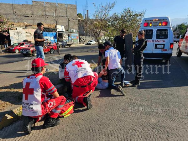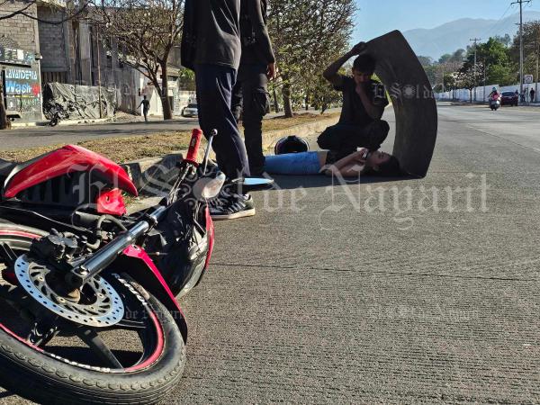 La jovencita resultó aún con más heridas que el joven, por lo cual fue atendida rápidamente; quedó tendida en el pavimento tras el choque.