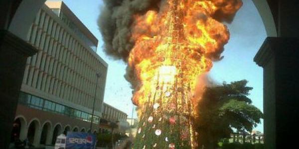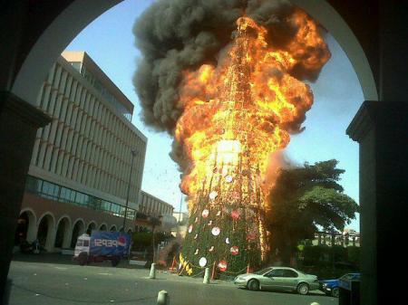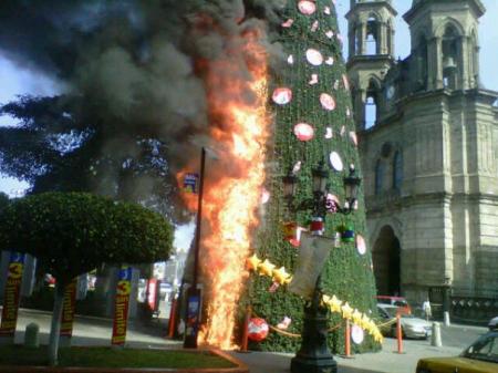 La mañana de este lunes a varias cuadras de distancia se podía observar una gran nube negra que salía precisamente de centro histórico de Tepic; al principio se especulaba que el siniestro se encontraba en el mercado Juan Escutia cuando de inmediato Reporteros de el Sol de Nayarit se trasladaron al lugar de los hechos, confirmando que el pino navideño, elaborado con material sintético que se encuentra ubicado en la Plaza Principal, frente a Catedral, era el que se estaba incendiando y por lo cual fue consumido en su totalidad en cuestión de minutos.