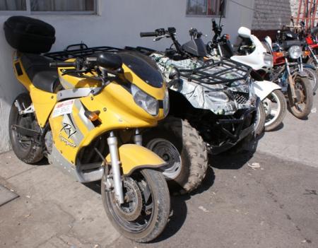 9.- Una motocicleta marca Suzuki, tipo cuatrimoto, color camuflajeado, sin placas de circulación, motor 400.