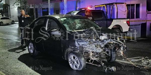 Un aparatoso accidente dejó un saldo de dos vehículos destrozados sobre la avenida Insurgentes entre las calles León y Querétaro en la colonia Centro de Tepic.