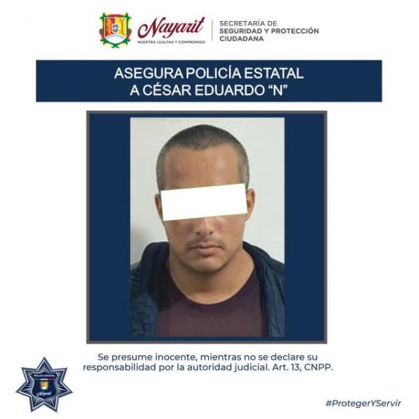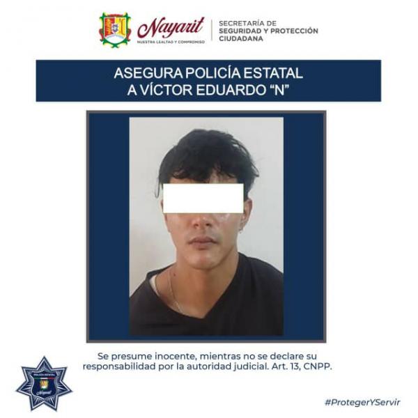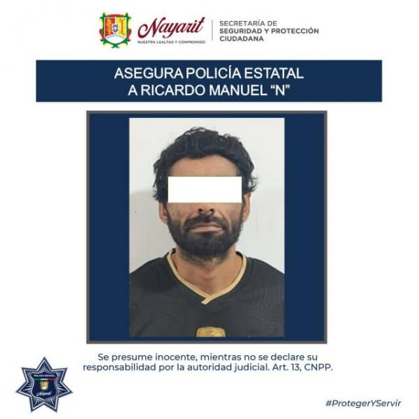 7.- Ricardo Manuel "N" "N", de 35 años, en la colonia Villas del Nayar, asegurándole una bolsa de plástico conteniendo en su interior un vegetal verde y seco con las características de la droga conocida como marihuana.