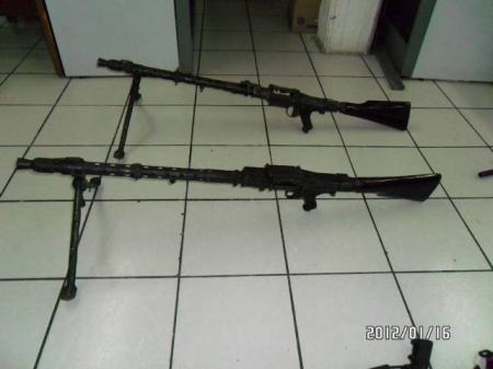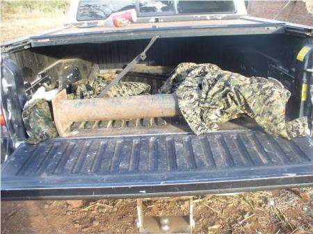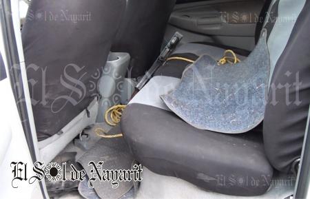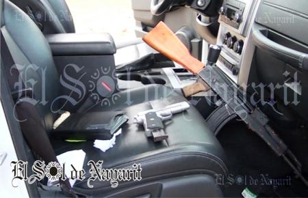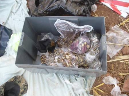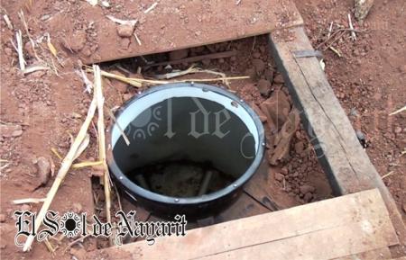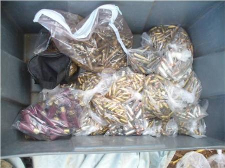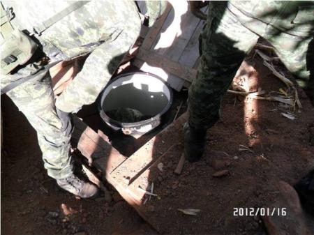 Al realizar una revisión minuciosa a la casa, personal militar notó una irregularidad en la tierra al lado de la vivienda, por lo que al revisar más de cerca se encontraron con un tinaco enterrado en cuyo interior se encontraban una gran cantidad de armas y cartuchos, así como también aseguraron un total de tres camionetas.