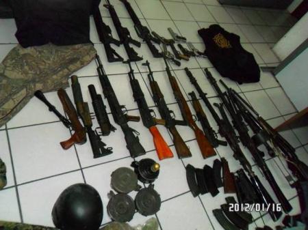 En un operativo realizado por la 13/a Zona Militar se logró asegurar un gran número de armas, así como también droga, vehículos y uniformes de diferentes organizaciones policiacas y militares.