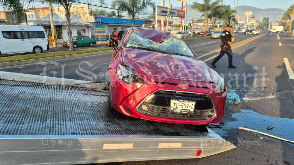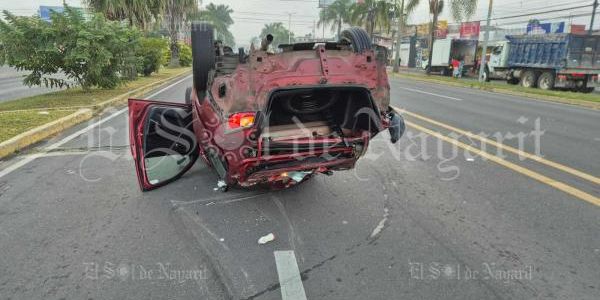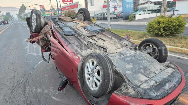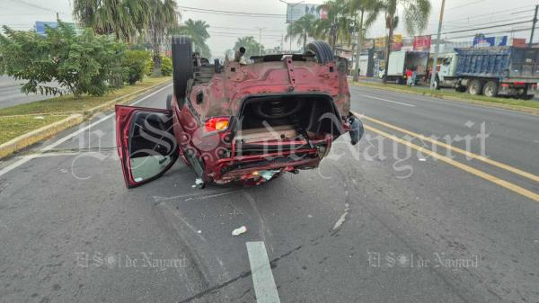 Se registró una aparatosa volcadura durante la mañana de este sábado en los carriles centrales de la avenida Tecnológico a la altura de Nayarabastos en la ciudad de Tepic.