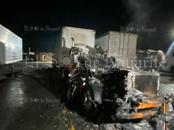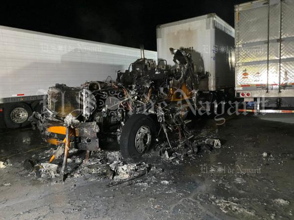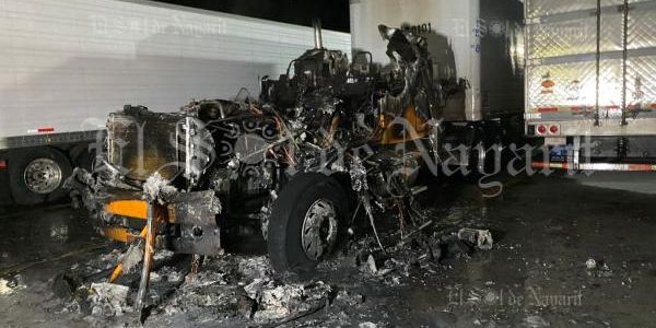 Se registró el incendio de un trailer en una pensión de camiones a un costado de una gasolinera ubicada frente a los botaneros, cerca del Libramiento Carretero de Tepic a la altura de la colonia Los Fresnos.