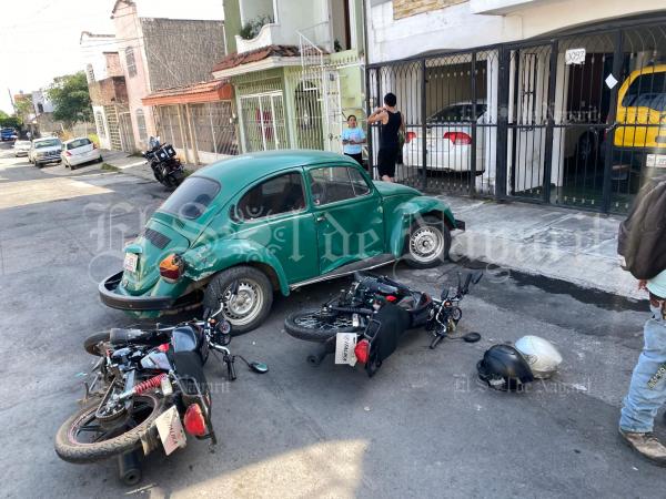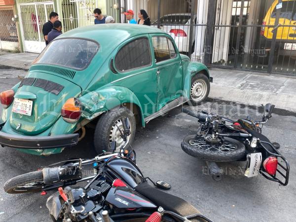 Señalan que un vehículo Volkswagen tipo verde se encontraba estacionado y de repente se intentó incorporar a la calle y le cortó la circulación a dos motocicletas de la marca Italika tipo FT150 en color negro.