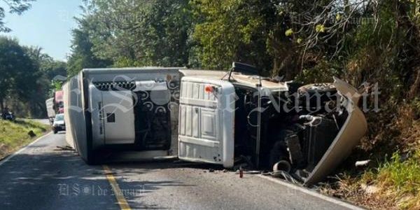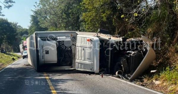 Se trata de un tráiler en color blanco con cargamento de abarrotes, el cual circulaba con sentido de Tepic a Mazatlán; según la versión del conductor, al salir de la curva le fallaron los frenos, lo que provocó que el tráiler saliera de la cinta asfáltica hacia la cuneta y chocara contra el paredón, instantes después la unidad salió proyectada hacia la carretera y quedó volcada sobre su costado derecho.