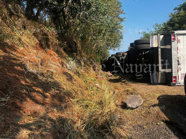 Este miércoles se registró un accidente de trailer en la carretera federal 15 Tepic-Mazatlán aproximadamente en el kilómetro 20 a la altura de la localidad de El Mirador del Águila.
